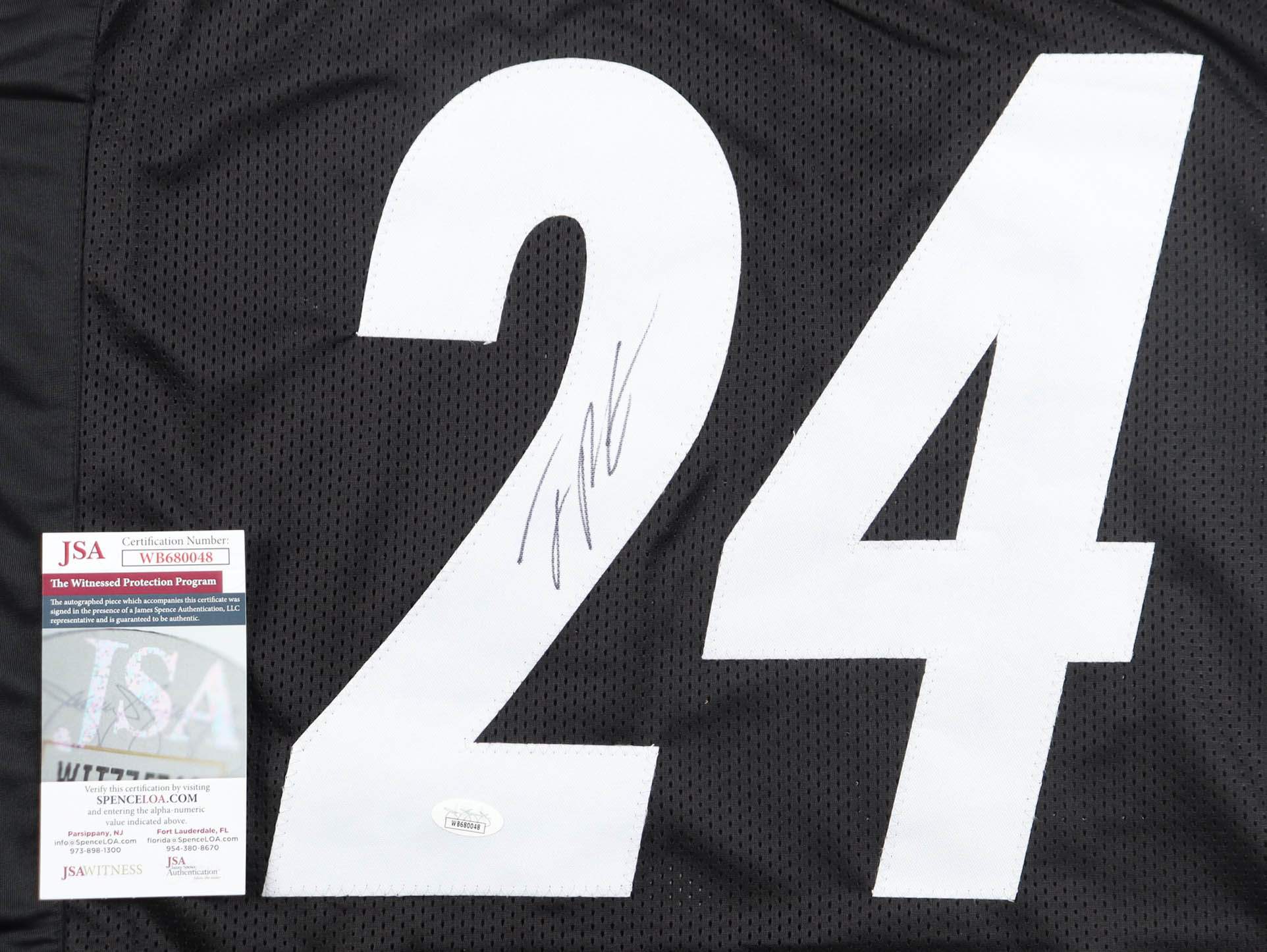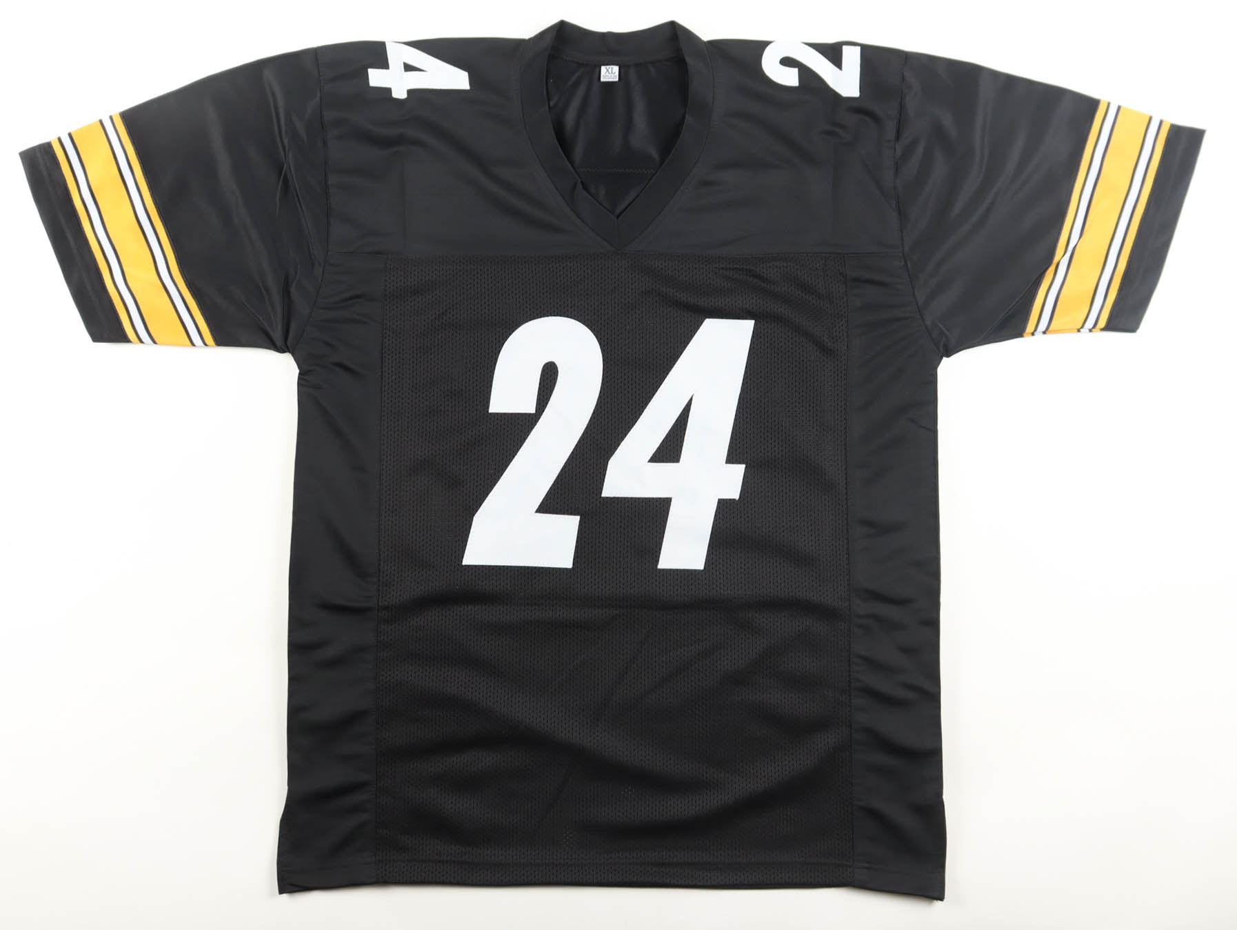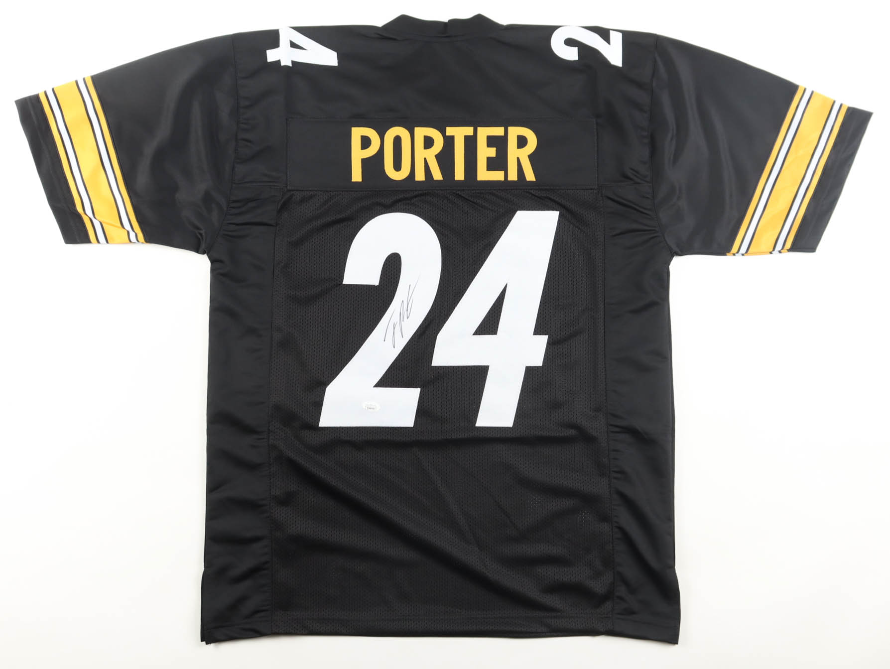 Custom jersey with everything sewn on, size XL. Hand-signed by Joey Porter Jr.. Please note, glue is visible through the reverse number.