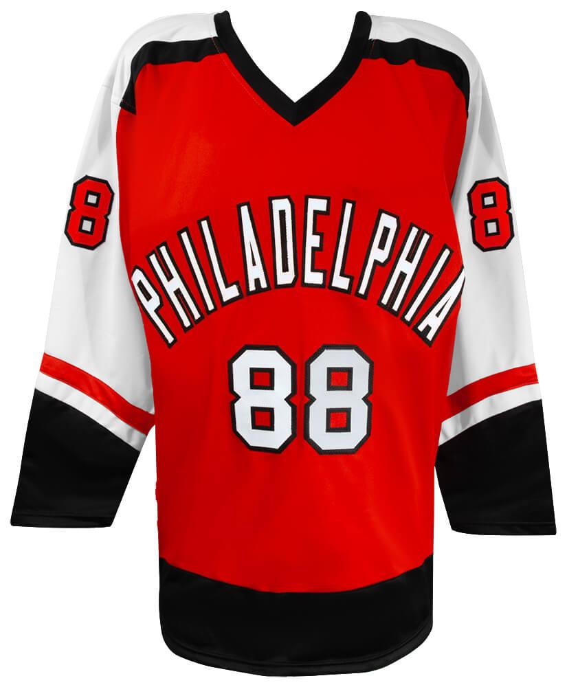 Custom jersey with everything sewn on, size XL. Hand-signed by Eric Lindros (HOF).
