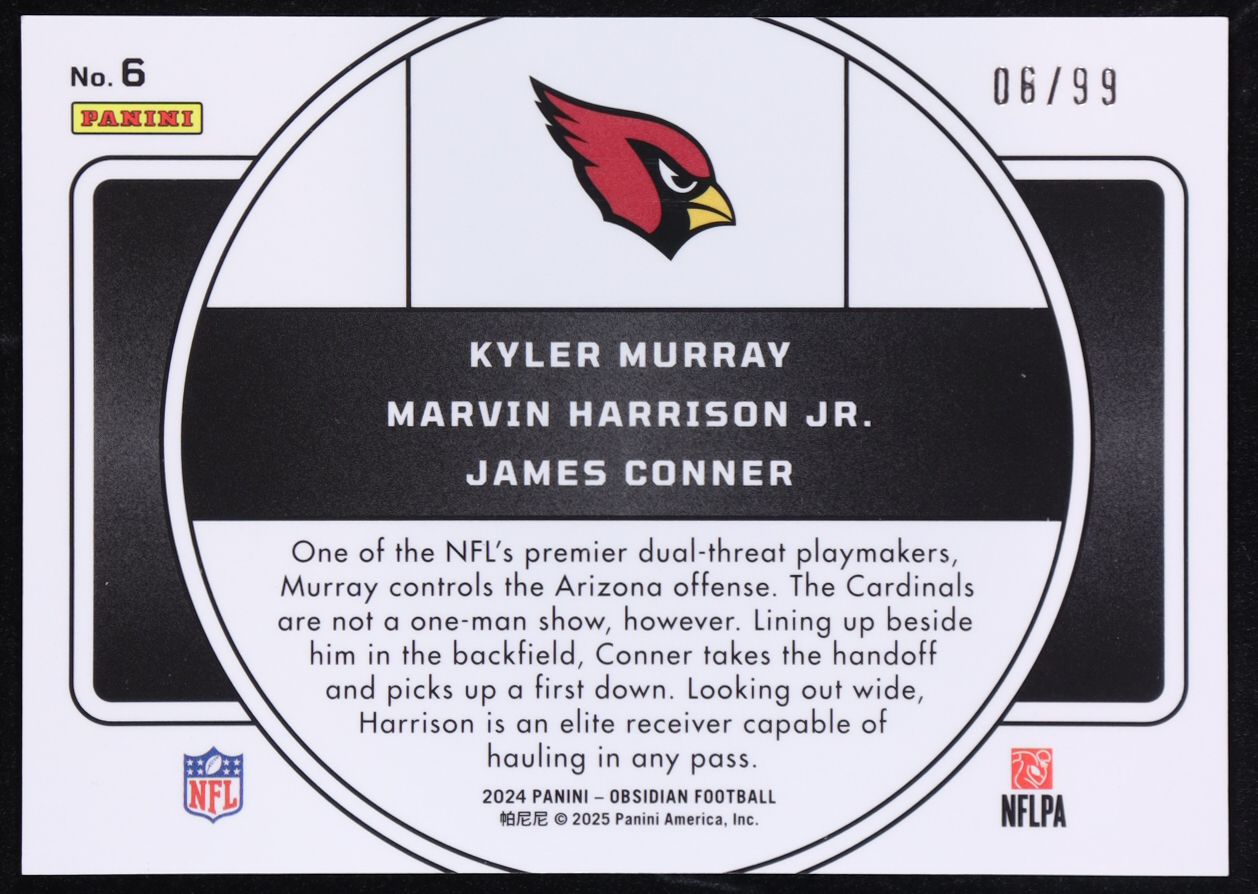 Kyler Murray / James Conner / Marvin Harrison Jr. 2024 Panini Obsidian Nucleus Silver #6 #06/99