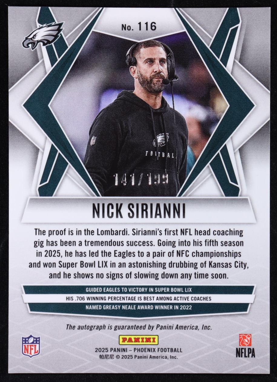 Nick Sirianni 2025 Panini Phoenix Autographs Silver #116 #141/199