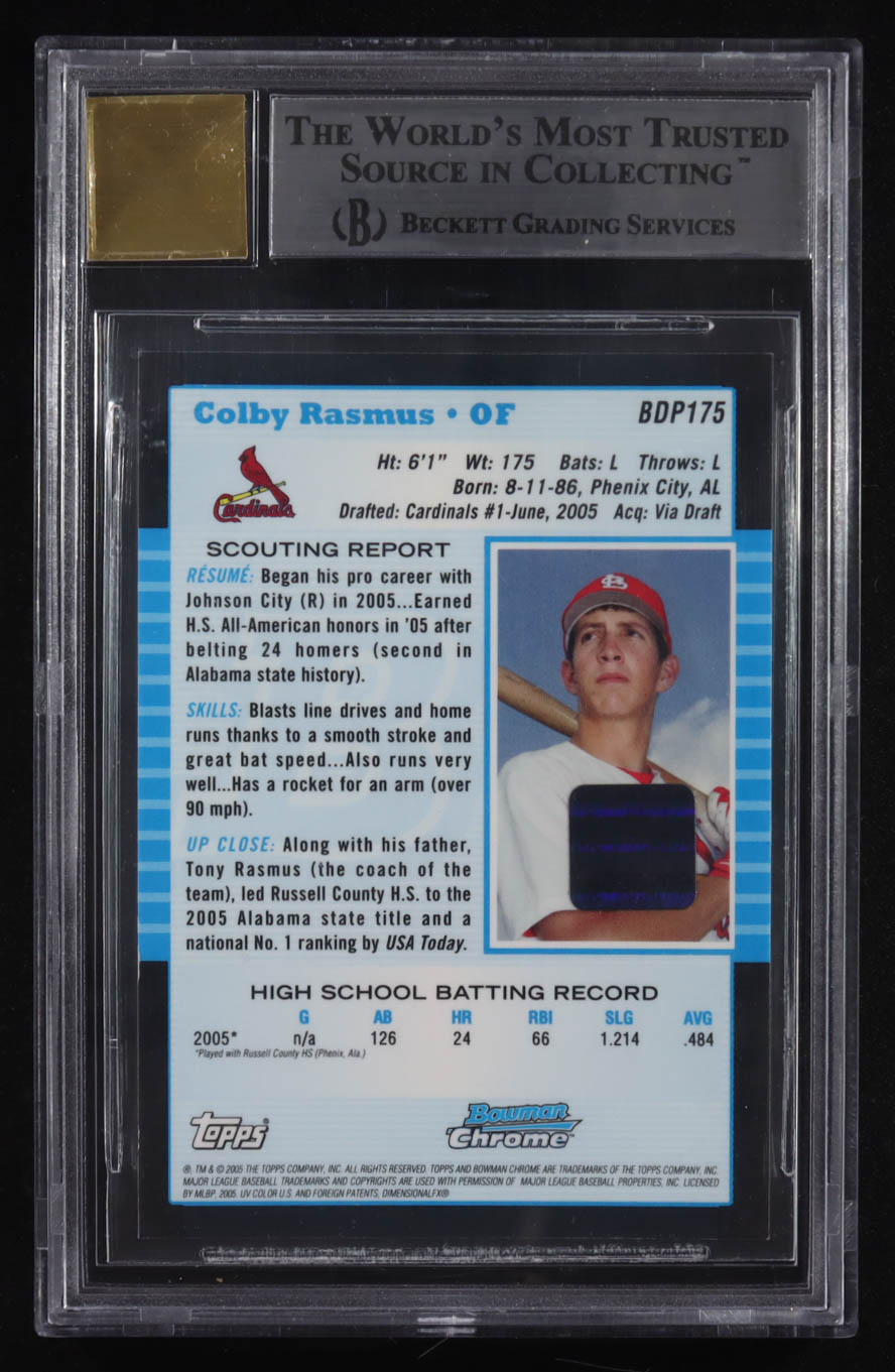 Colby Rasmus 2005 Bowman Chrome Draft Autographs #BDP175 RC (BGS 8.5 | Autograph Grade 10)