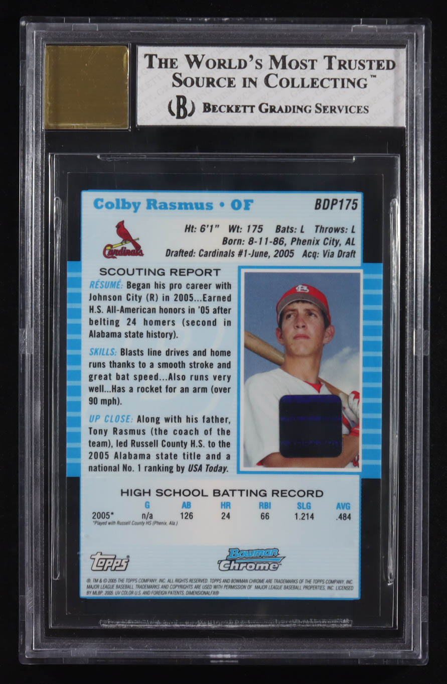 Colby Rasmus 2005 Bowman Chrome Draft Autographs #BDP175 RC (BGS 8 | Autograph Grade 10)