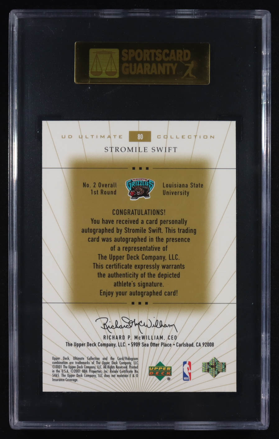 Stromile Swift 2000-01 Ultimate Collection Rookies Autographs #80 #069/250 RC (SGC 9)