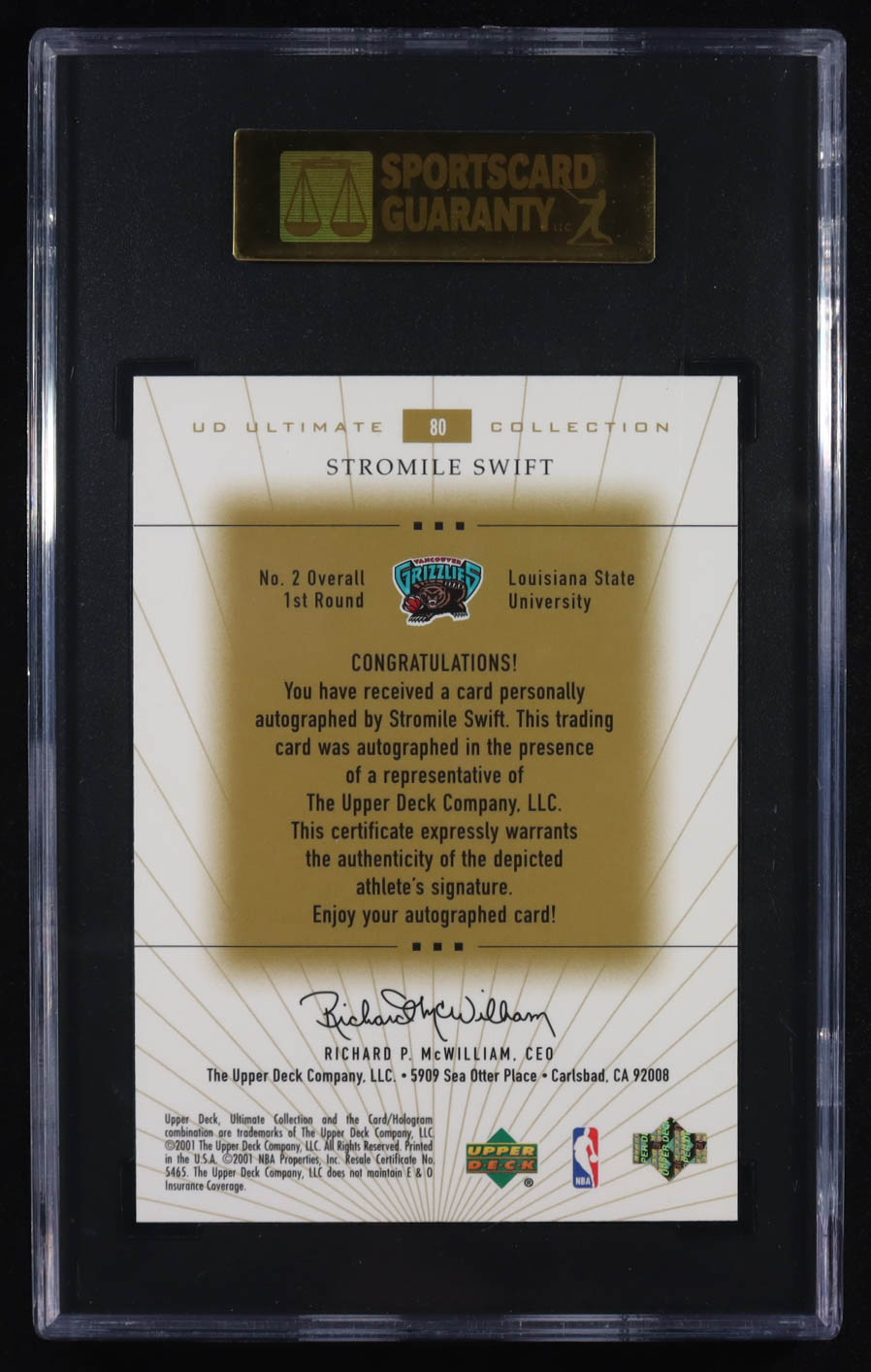 Stromile Swift 2000-01 Ultimate Collection Rookies Autographs #80 #122/250 RC (SGC 8.5)