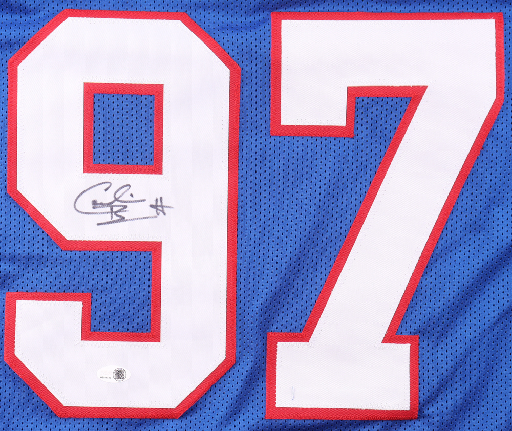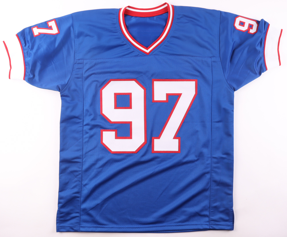 Custom jersey with everything sewn on, size XL. Hand-signed by Cornelius Bennett (HOF).