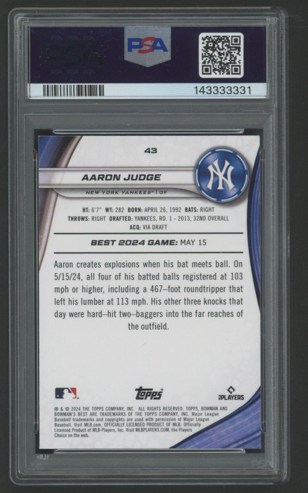 Aaron Judge 2024 Bowman's Best #43 (PSA 10)