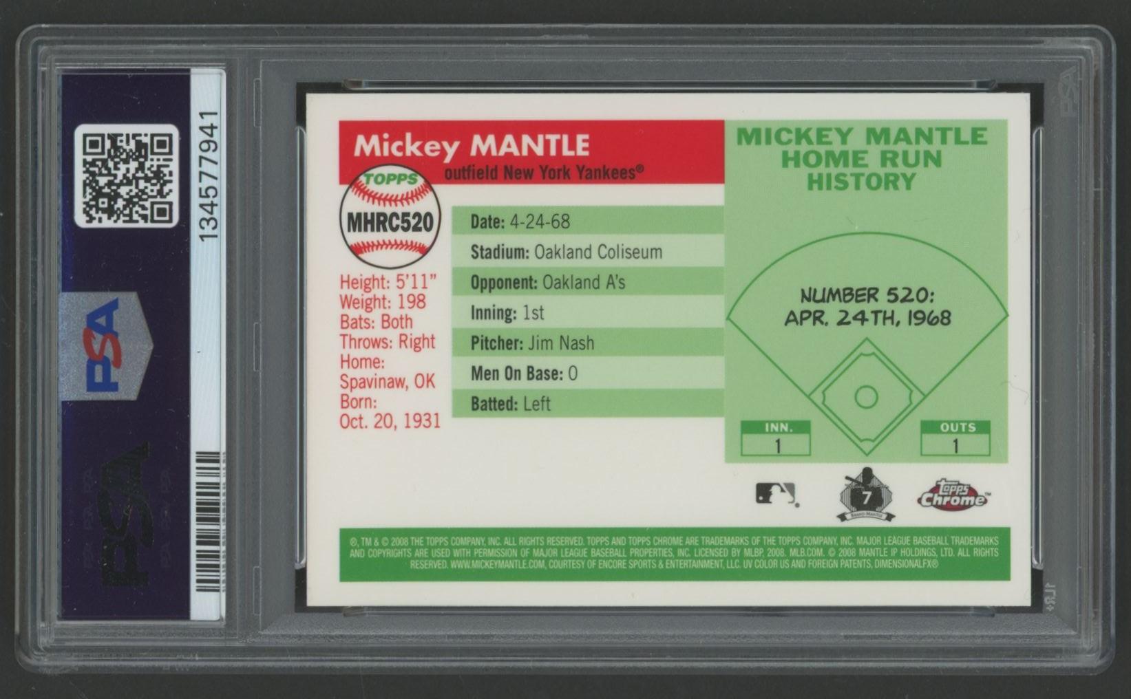 Mickey Mantle 2008 Topps Chrome Mantle Home Run History #MHRC520 (PSA 10)