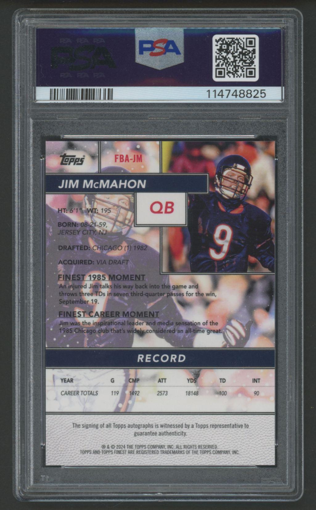 Jim McMahon 2024 Finest Flashback Autographs Oil Spill Refractor #FBAJM #4/10 (PSA 9)