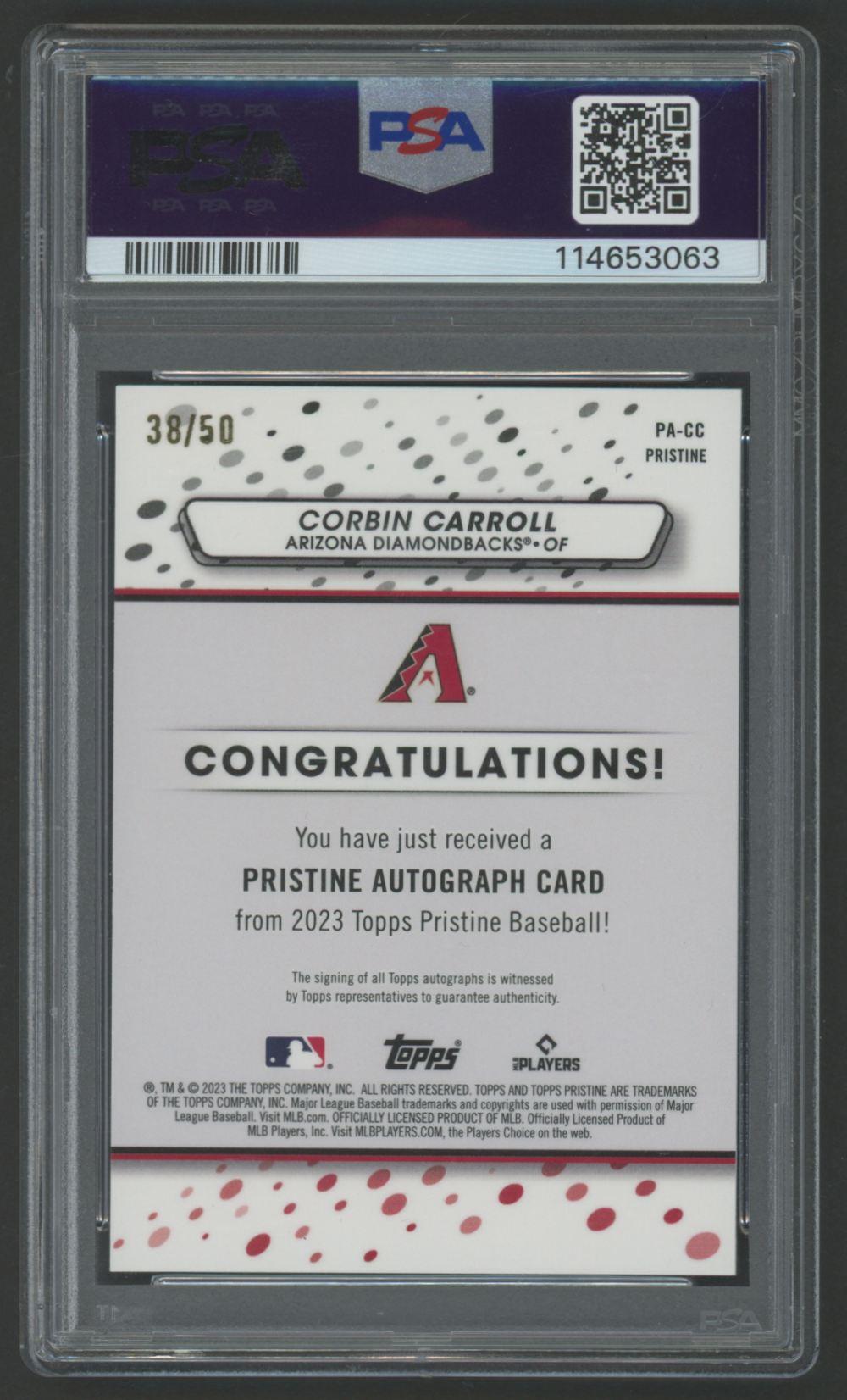 Corbin Carroll 2023 Topps Pristine Autograph Gold #PACC #38/50 (PSA 9)