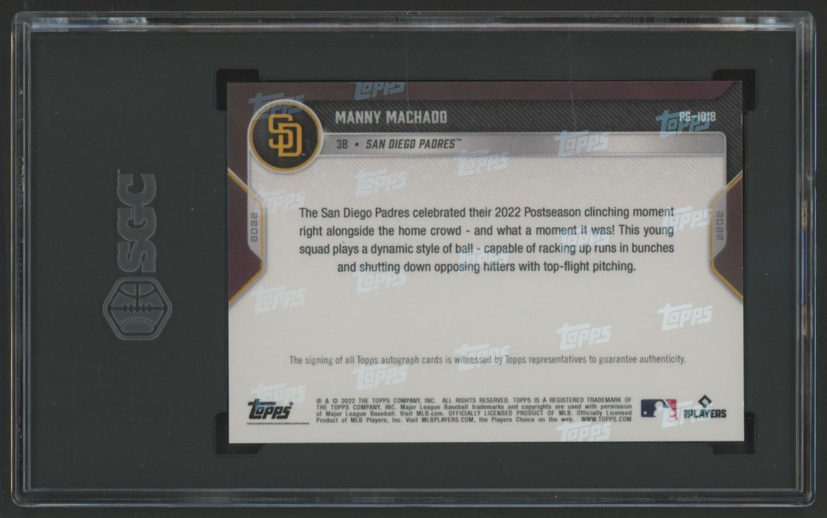 Manny Machado 2022 Topps Now Postseason Autographed Blue #PS101B #44/49 (SGC 10 | Auto 10)