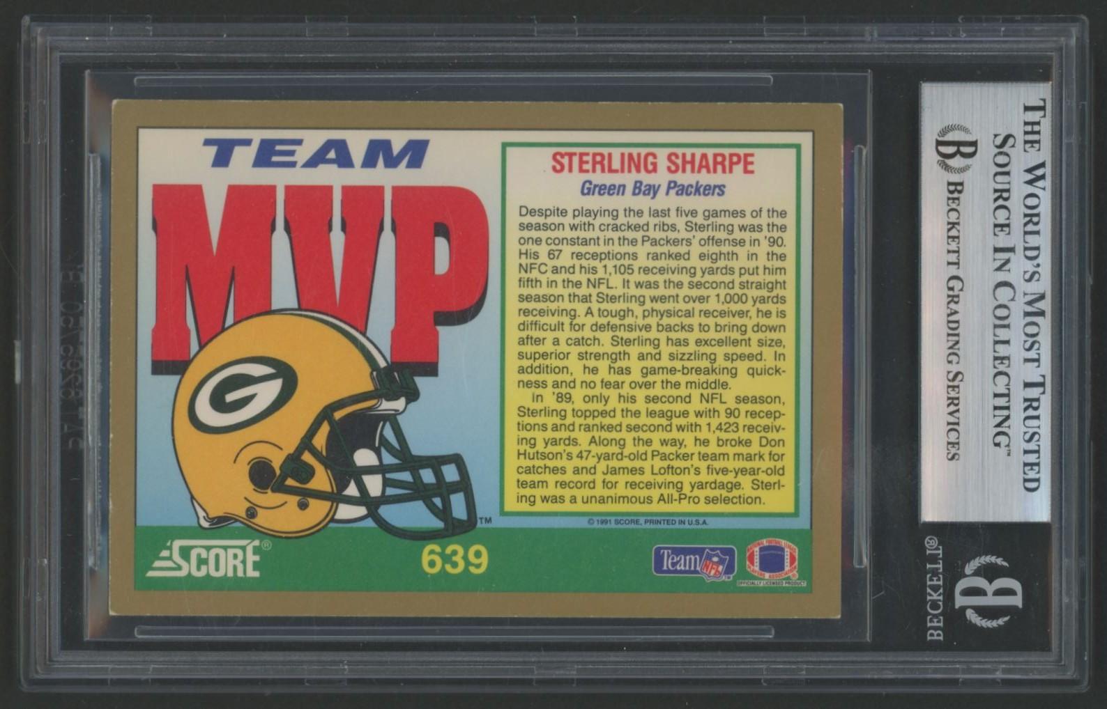 Sterling Sharpe Signed 1991 Score MVP #639 (BGS)