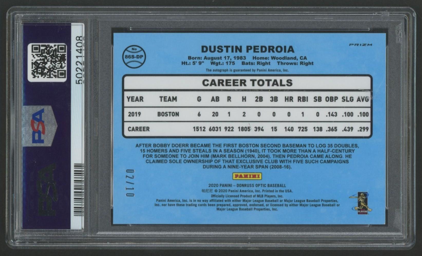 Dustin Pedroia 2020 Donruss Optic Retro '86 Signature Gold #86SDP #2/10 (PSA 9)