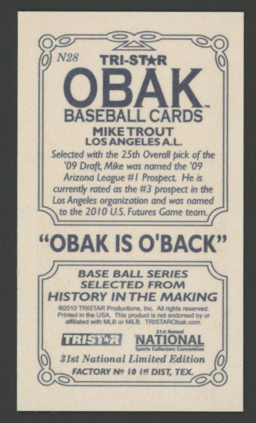 Mike Trout 2010 TRISTAR Obak National Convention VIP Mini #N28 RC