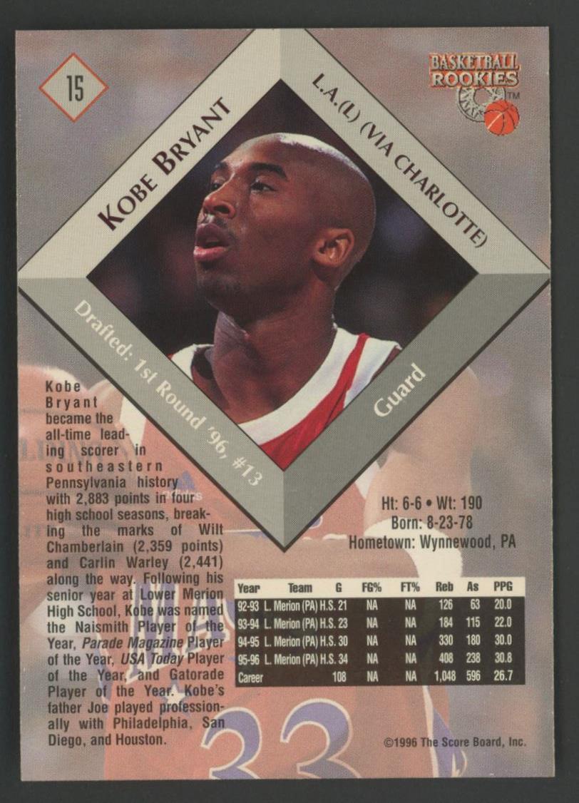 Kobe Bryant 1996 Score Board Rookies #15 RC