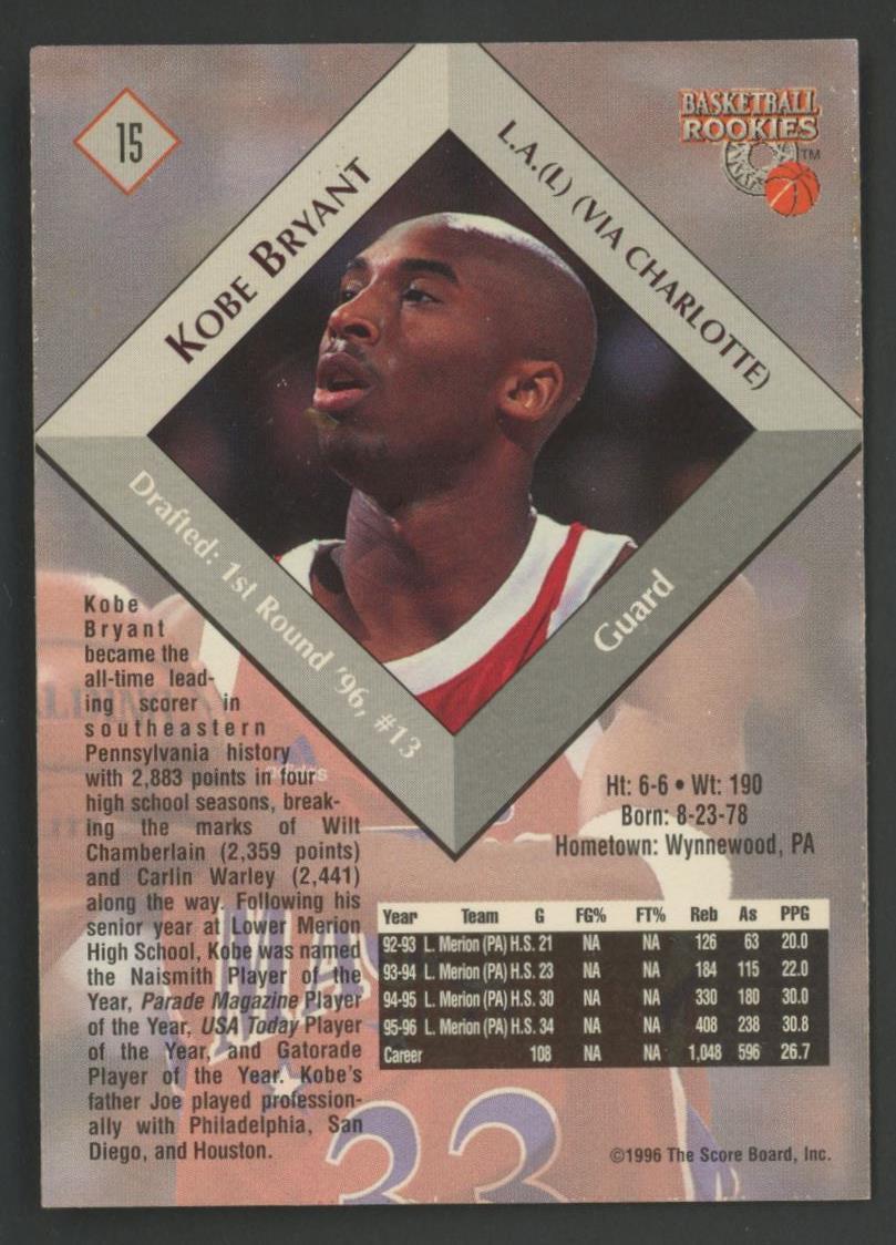 Kobe Bryant 1996 Score Board Rookies #15 RC