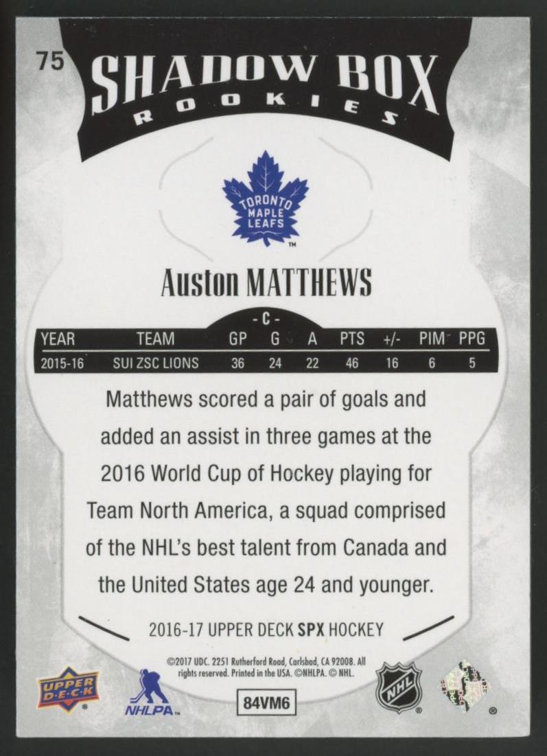 Auston Matthews 2016-17 SPX Shadow Box Rookies #75 #6/249
