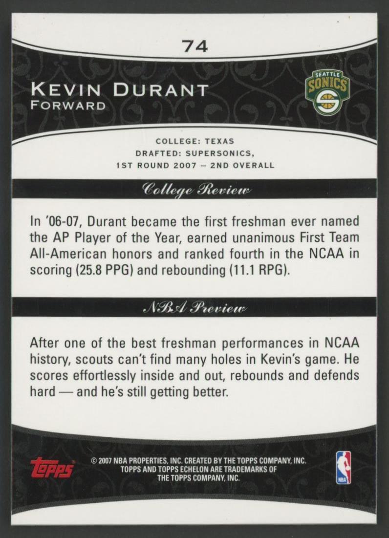 Kevin Durant 2007-08 Topps Echelon #74 RC #719/999