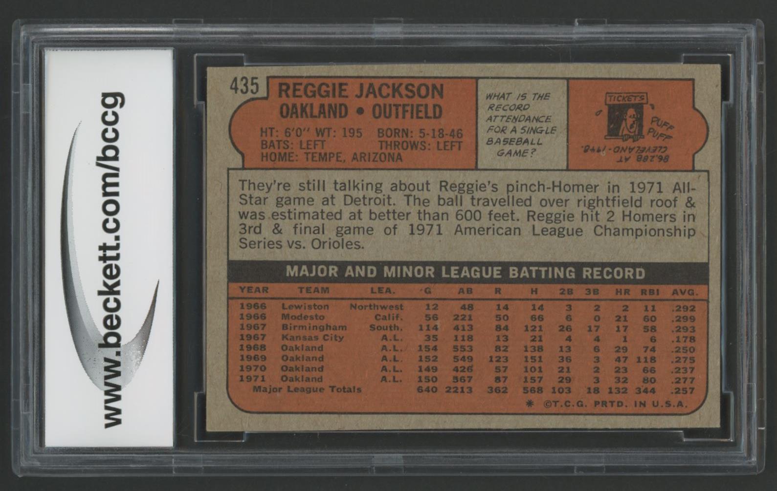 Reggie Jackson 1972 Topps #435 (BCCG 9)