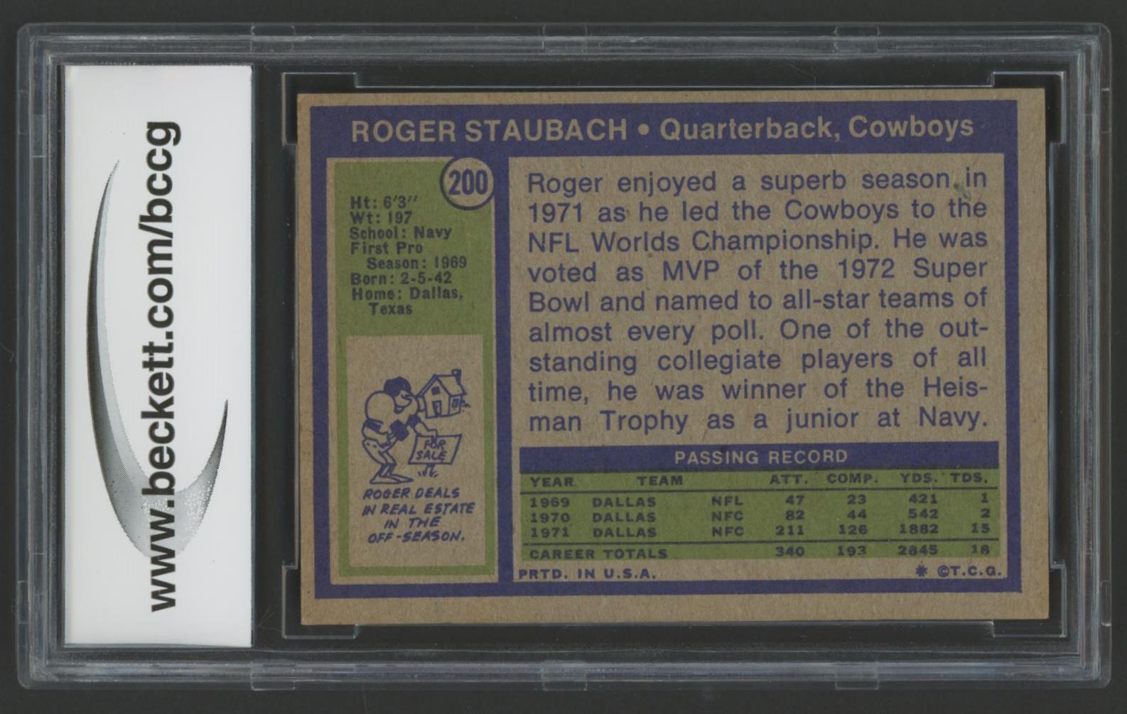 Roger Staubach 1972 Topps #200 RC (BCCG 8)