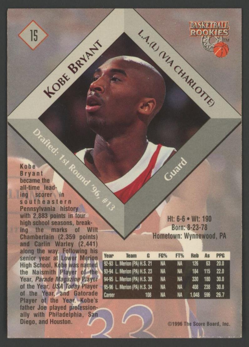 Kobe Bryant 1996 Score Board Rookies #15 RC