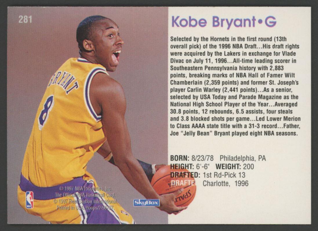 Kobe Bryant 1996-97 Hoops #281 RC
