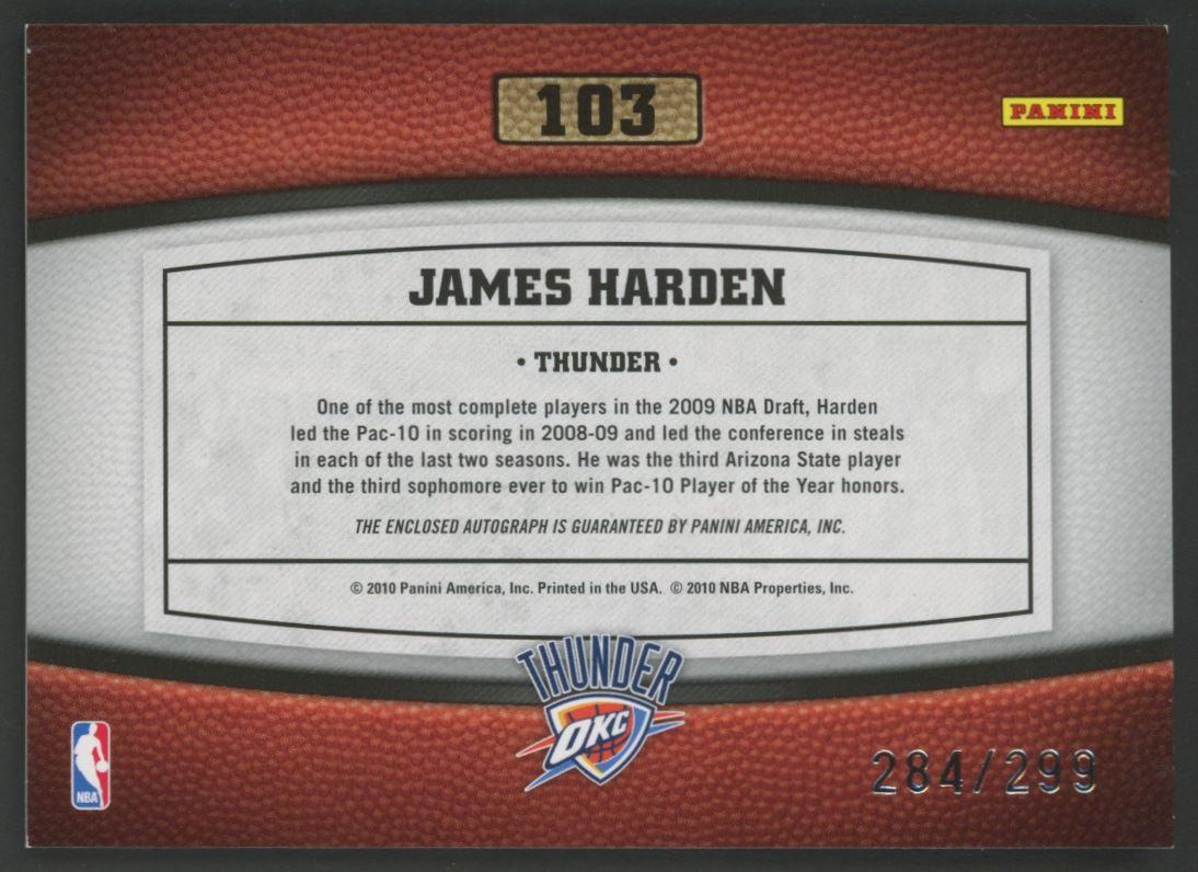 James Harden 2009-10 Timeless Treasures Rookie Recruits Autographs #103 #284/299
