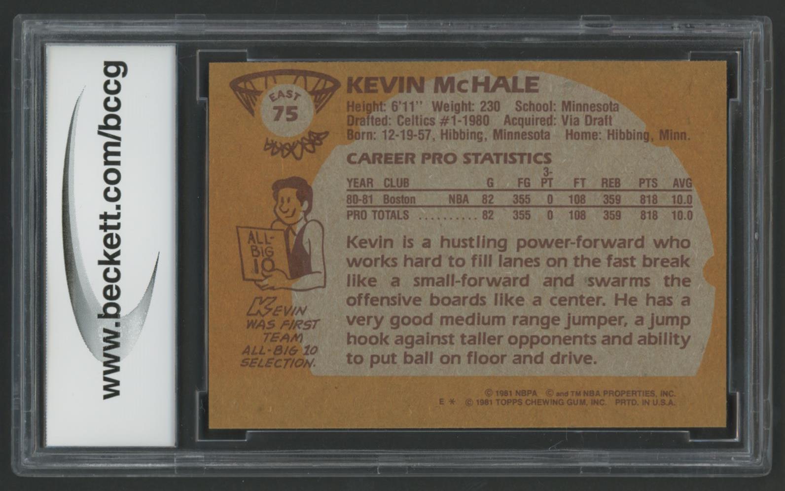 Kevin McHale 1981-82 Topps #E75 RC (BCCG 9)