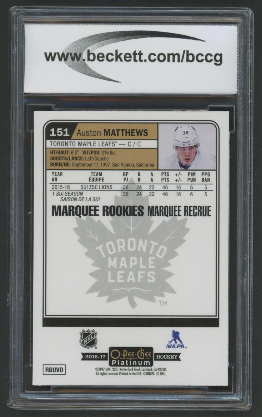 Auston Matthews 2016-17 O-Pee-Chee Platinum Marquee #151 RC (BCCG 10)