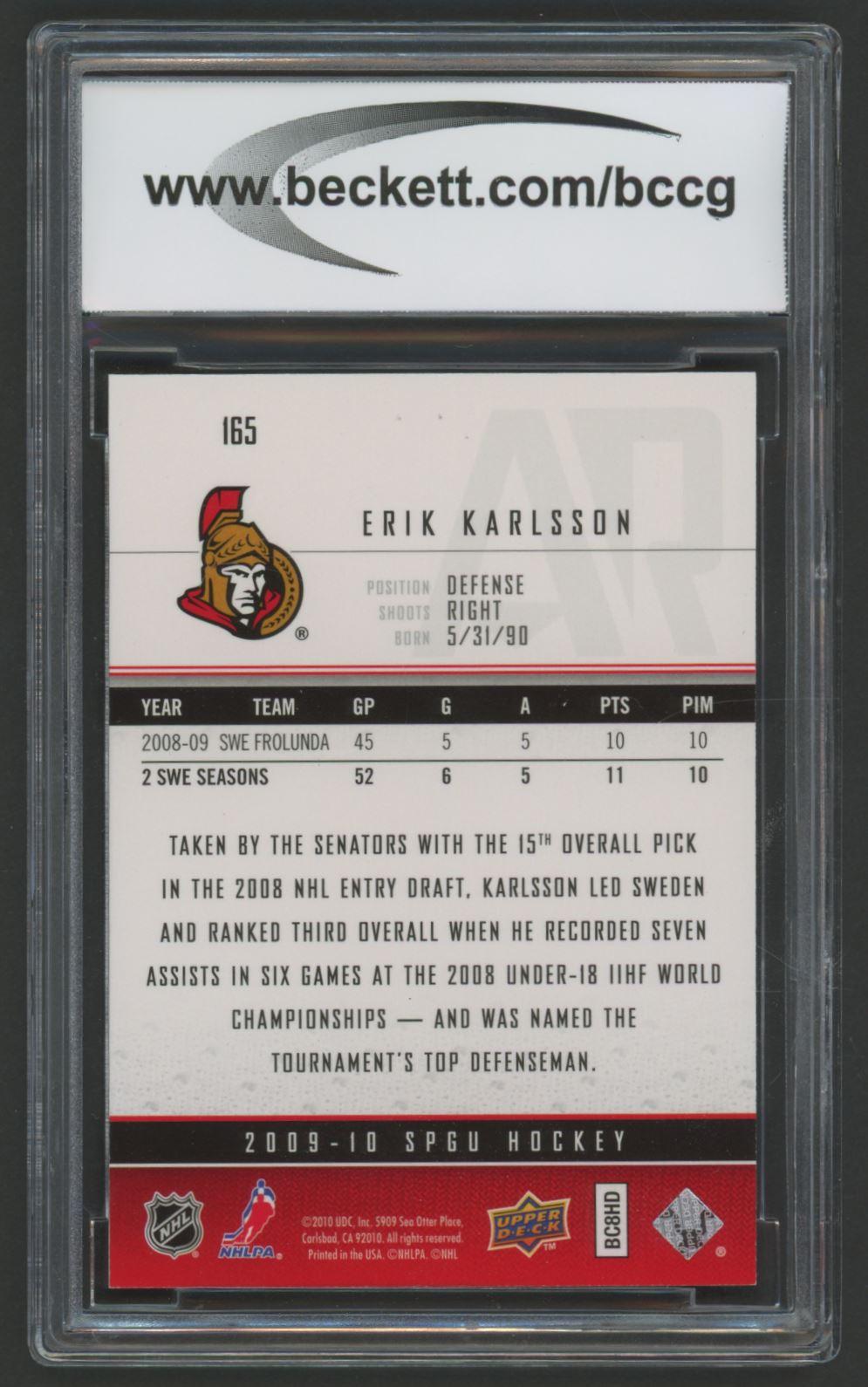 Erik Karlsson 2009-10 SP Game Used #165 RC #690/699 (BCCG 10)