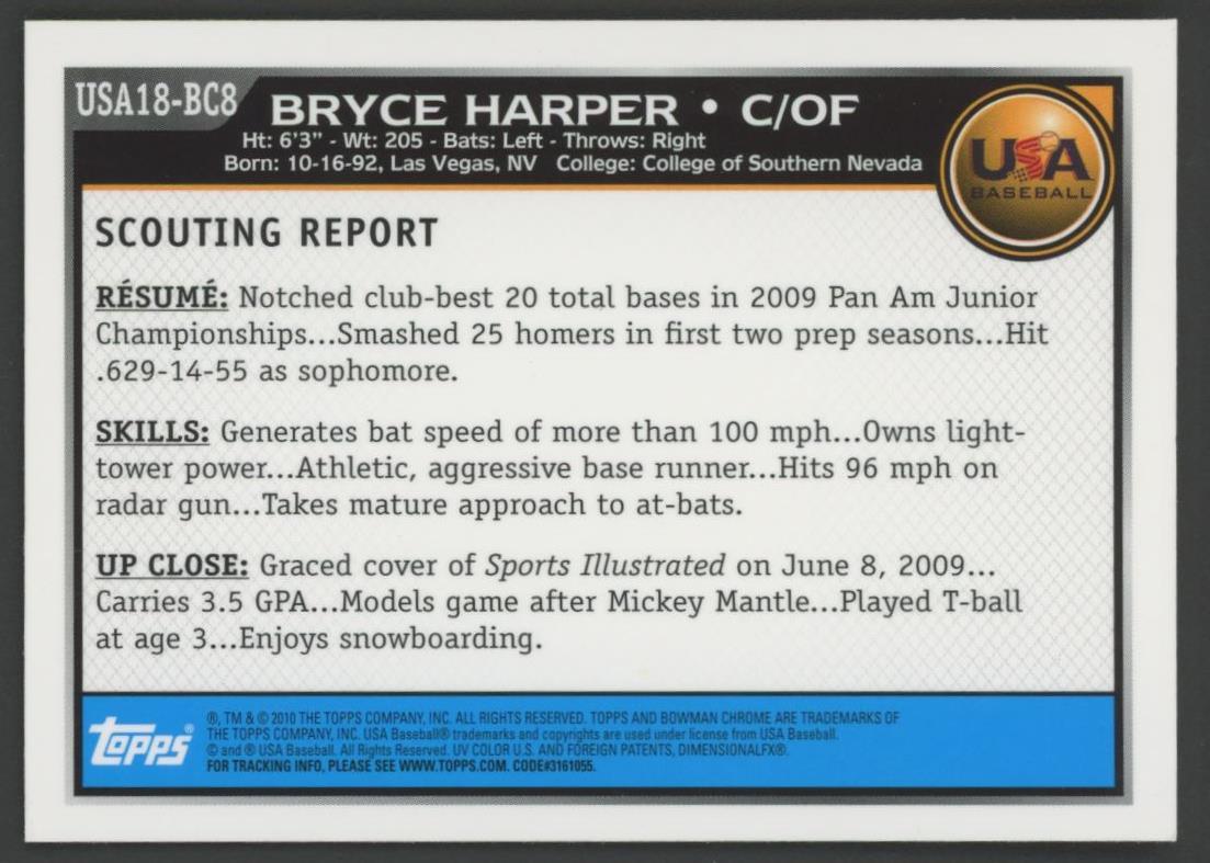 Bryce Harper 2010 Bowman Chrome 18U USA Baseball #18BC8 RC