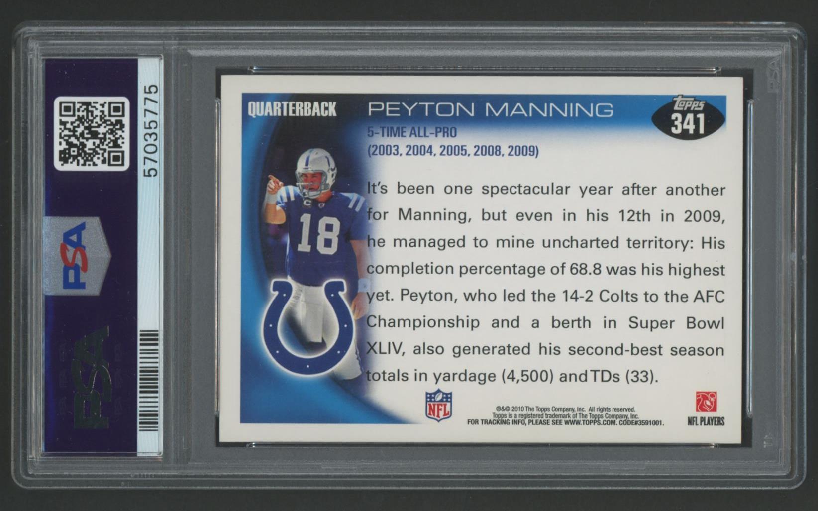 Peyton Manning Signed 2010 Topps #341 AP (PSA)