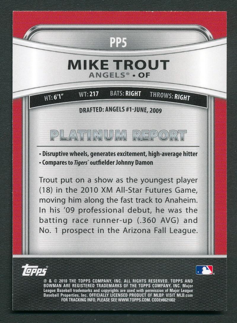 Mike Trout 2010 Bowman Platinum #PP5 RC