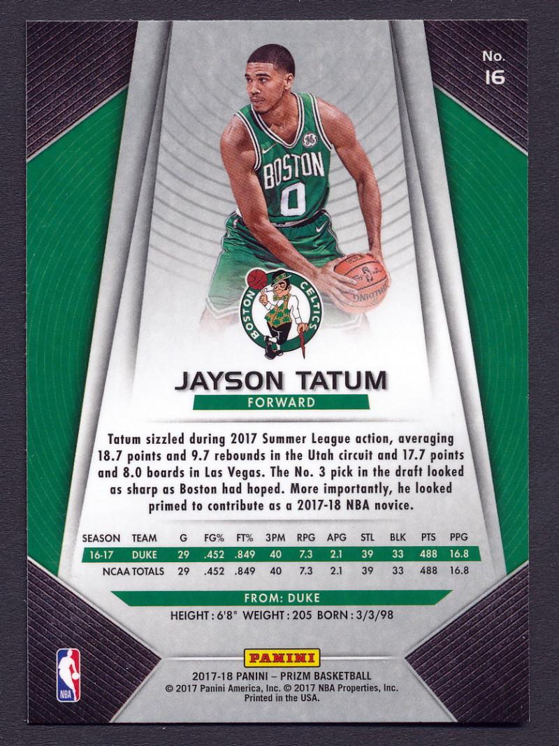 Jayson Tatum 2017-18 Panini Prizm #16 RC