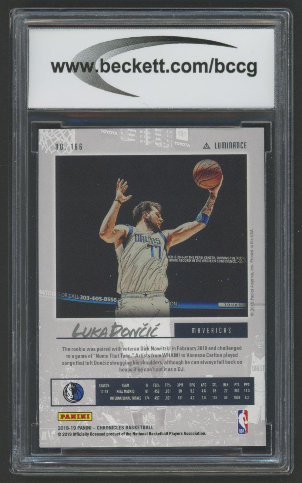 Luka Doncic 2018-19 Panini Chronicles Luminance #166 RC (BCCG 10)