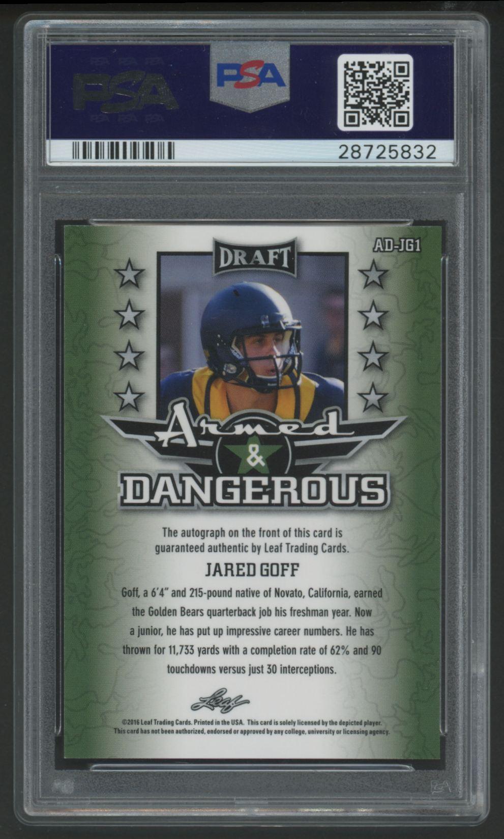 Jared Goff 2016 Leaf Metal Armed & Dangerous Autograph #ADJG1 (PSA 10)