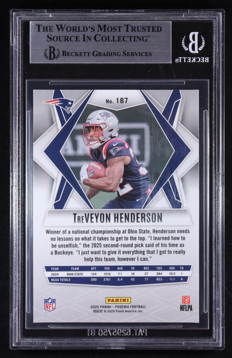 TreVeyon Henderson 2025 Panini Phoenix #187 RC (BGS 9)
