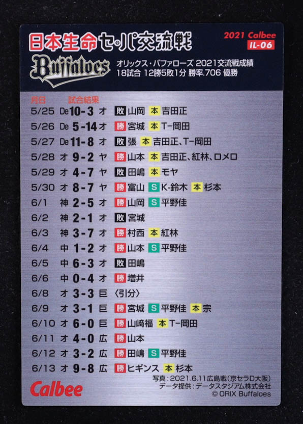 Yoshinobu Yamamoto 2021 Calbee #IL06 RC