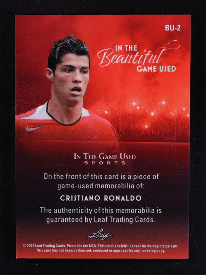 Cristiano Ronaldo 2025 Leaf ITG Used Sports In The Beautiful Game Relic Silver Sparkle Foil #BU2 #16/35