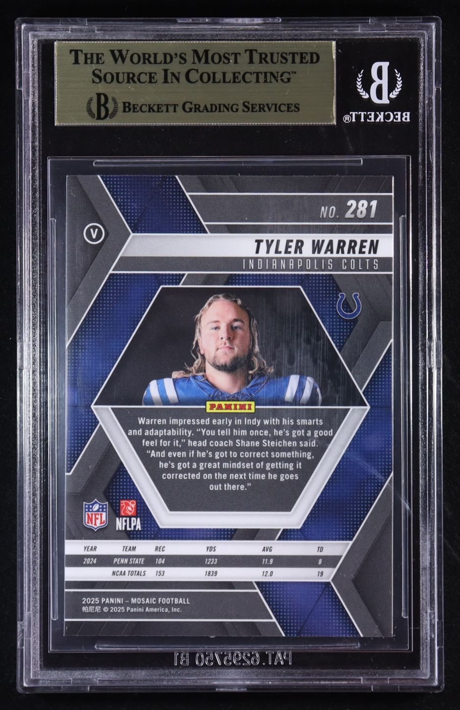 Tyler Warren 2025 Panini Mosaic #281 VAR RC (BGS 9.5)