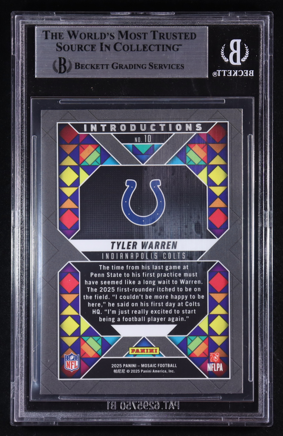 Tyler Warren 2025 Panini Mosaic Introductions #10 RC (BGS 8.5)