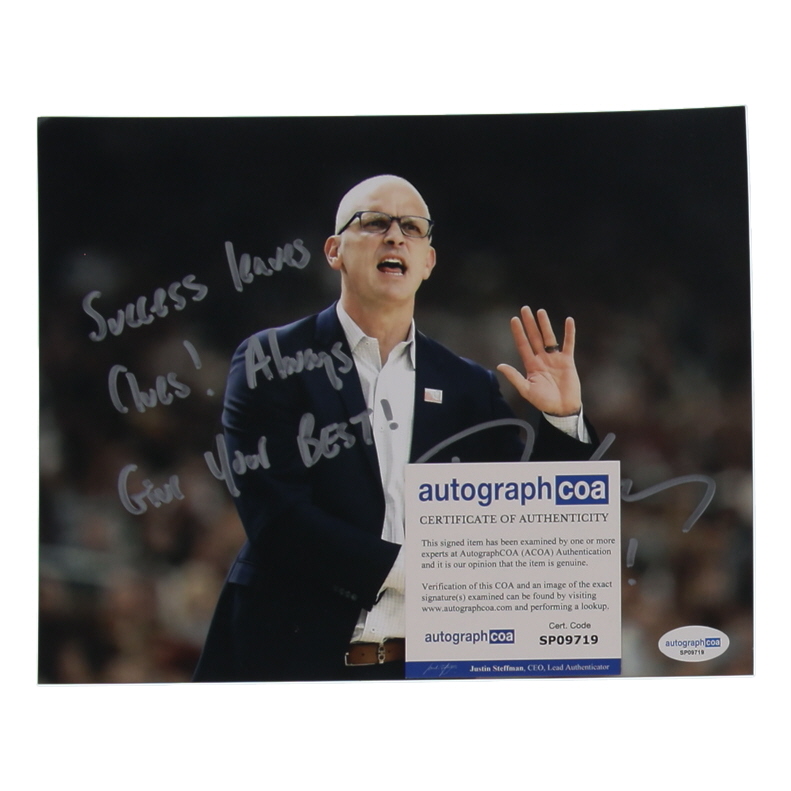 Dan Hurley Signed UConn Huskies 8x10 Photo Inscribed "Success Leaves Clues! Always Give Your Best!" & "B2B" (ACOA)