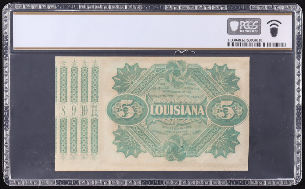1870s-1880s (1878) "Baby Bond" State of Louisiana, Baton Rouge Interest-Bearing Circulating Note (PCGS Uncirculated 61)