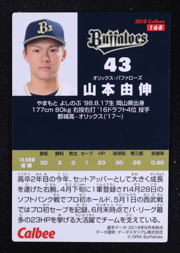 Yoshinobu Yamamoto 2018 Calbee #168 RC