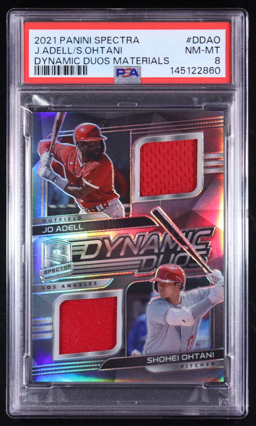 Jo Adell / Shohei Ohtani 2021 Panini Spectra Dynamic Duos Materials #1 (PSA 8)