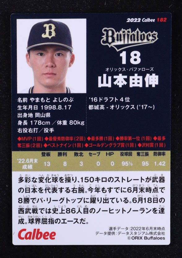 Yoshinobu Yamamoto 2022 Calbee #182 RC