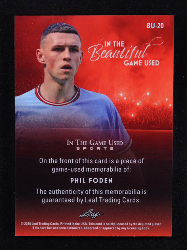 Phil Foden 2025 Leaf ITG Used Sports In The Beautiful Game Relic Blue Foil #BU20 #14/65