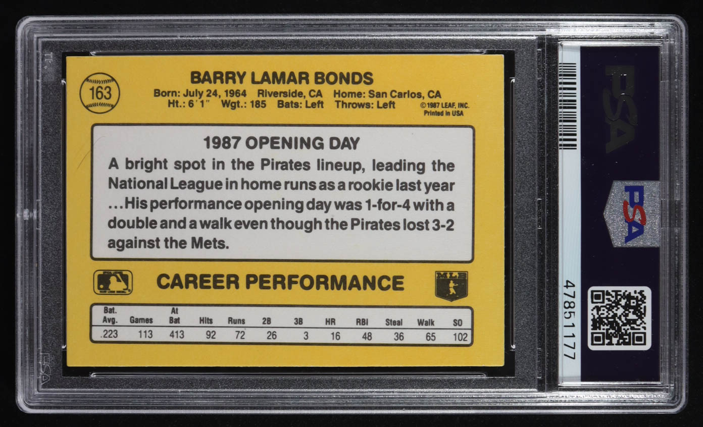 Barry Bonds 1987 Donruss Open Day White Jersey Corr. Photo #163 RC (PSA 8)