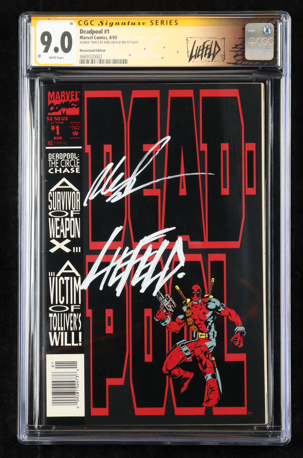 Rob Liefeld Twice-Signed 1993 "Deadpool" #1 Marvel Comic Book (CGC 9.0)