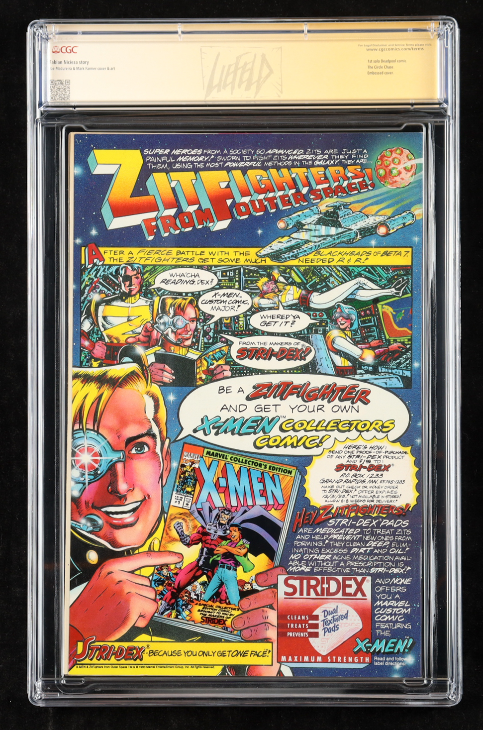 Marvel comic book has been twice-signed by the co-creator of Deadpool, Rob Liefeld! Comic book has been graded CGC 9.0!