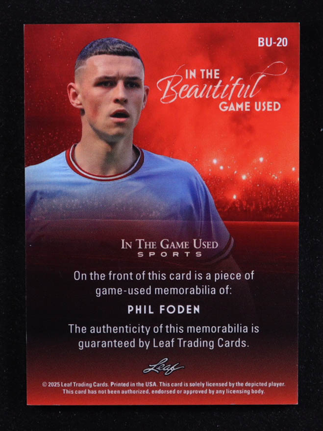 Phil Foden 2025 Leaf ITG Used Sports In The Beautiful Game Relic Blue Foil #BU20 #63/65